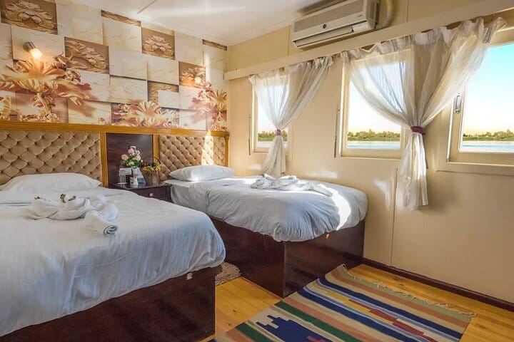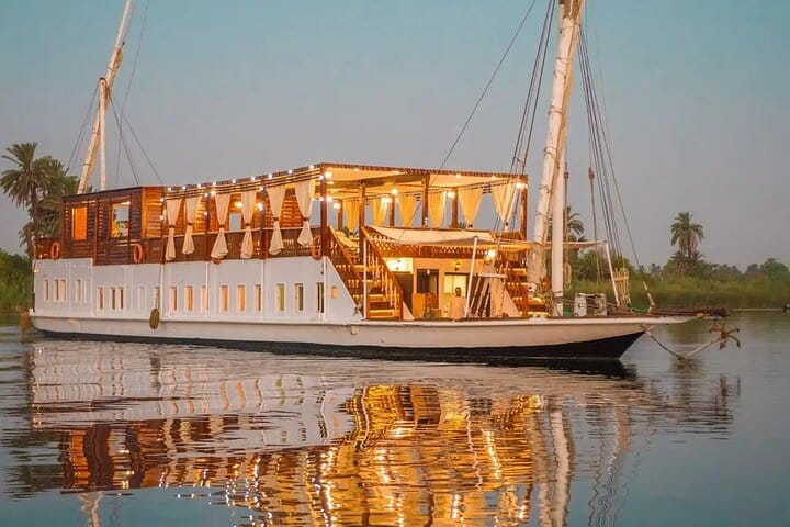 Sail the Nile aboard an elegant Dahabiya from Aswan to Luxor and enjoy a peaceful cruise experience away from large cruise crowds. Discover famous temples, historic landmarks, and beautiful riverside scenery with guided sightseeing along the route. Relax in comfortable cabins, enjoy full-board meals onboard, and experience the charm of traditional Nile sailing during this unforgettable journey through Upper Egypt.