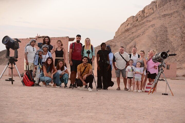 Escape the city and explore the magic of the Hurghada desert! Enjoy a sunset Jeep safari, ride a camel like a local, and relax with a traditional Bedouin dinner under the stars. Then, gaze through telescopes with an expert astronomer and learn about the wonders of the night sky. Small group, full experience — the perfect desert adventure awaits. Book now!
