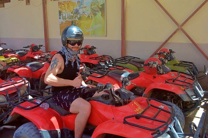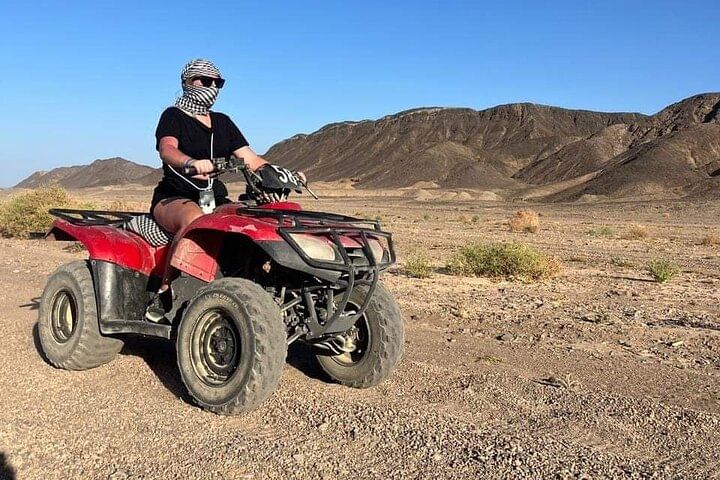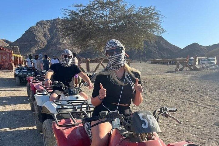 Explore the stunning Hurghada desert on this exciting 3-hour adventure. Ride a quad bike across golden sand dunes and enjoy a peaceful camel ride through the open landscape. Our local guides will lead the way and make sure you have a safe and fun experience. Perfect for adventure lovers and first-timers!
