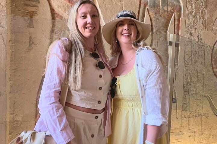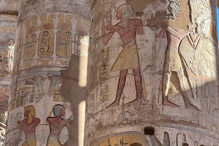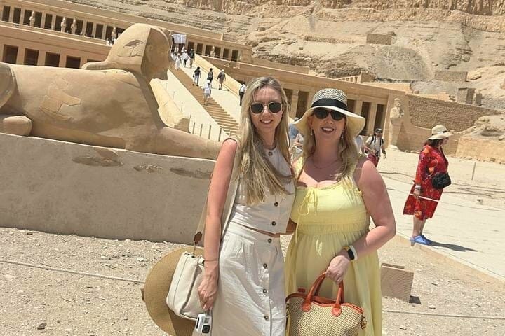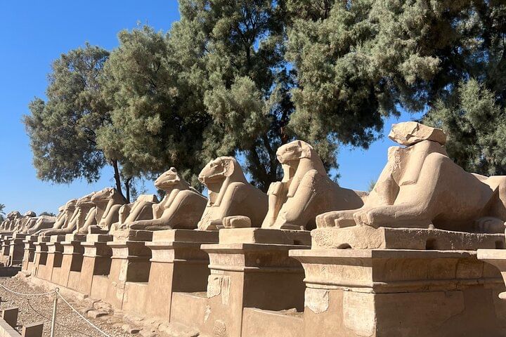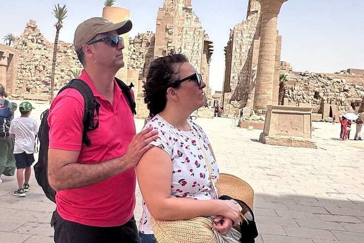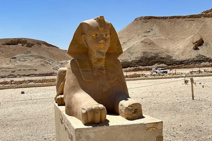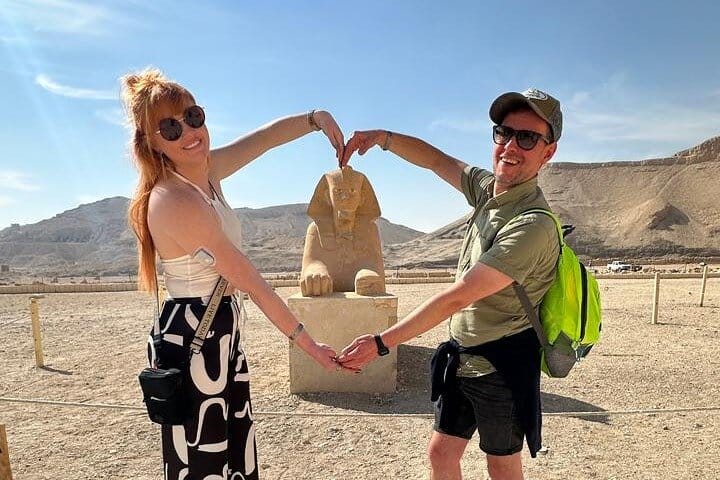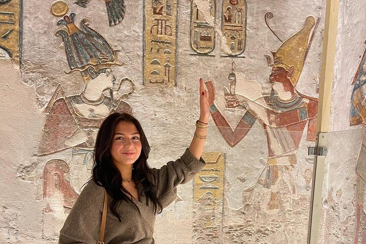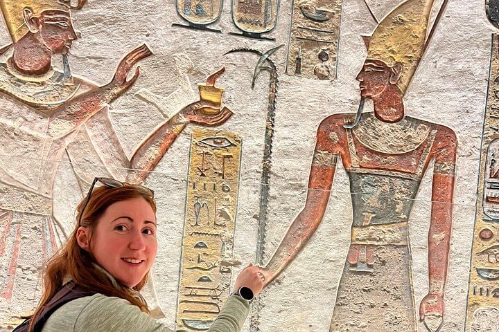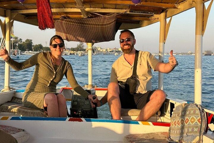 Spend a full day in Luxor discovering its most famous sites with a knowledgeable guide. Step into the tombs of ancient kings, visit the unique temple of Queen Hatshepsut, and see two giant statues that have stood for thousands of years. Later, walk through the impressive Karnak Temple, full of tall columns and old carvings. End your day with a calm sail on the Nile in a traditional wooden boat. A fun and easy way to explore the history and beauty of Luxor.